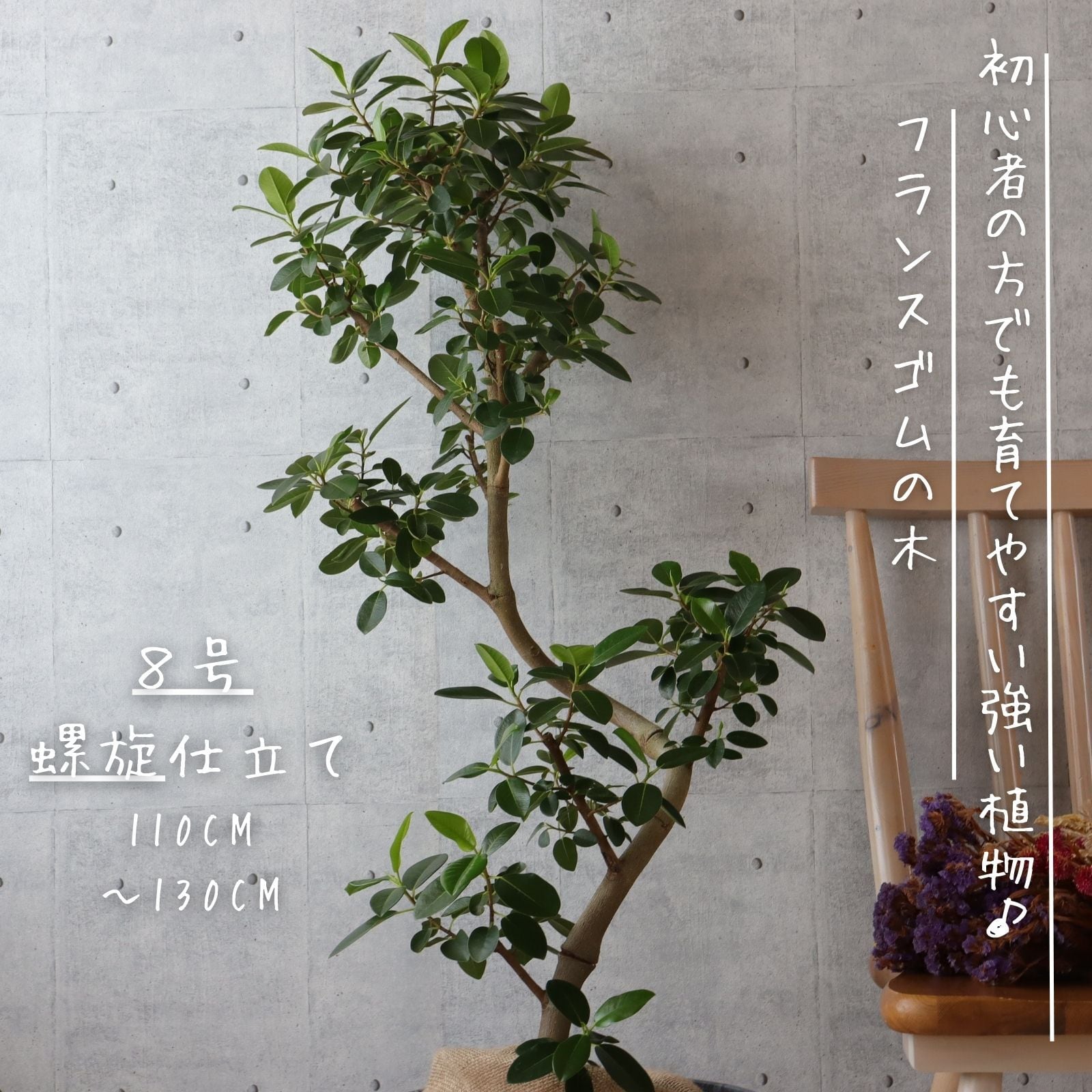 フランスゴム の木 フィカス ルビギノーサ フランスゴム 曲がり 螺旋 仕立て 仕立て ゴムの木 お祝い ギフト 開店祝い ラッピング 無料 観葉植物 プレゼント 新築祝い お中元 お歳暮 熱帯植物 8号